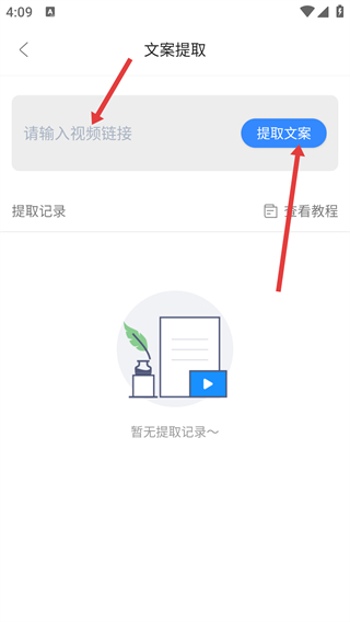 4、在文案提取頁面的【請(qǐng)輸入視頻鏈接】框中填入鏈接,點(diǎn)擊【提取文案】即可獲取視頻文案。