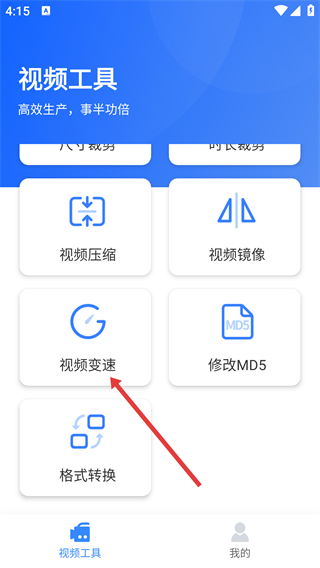 1、在視頻工具頁(yè)面點(diǎn)擊【視頻變速】選項(xiàng),進(jìn)入視頻變速功能操作頁(yè)。