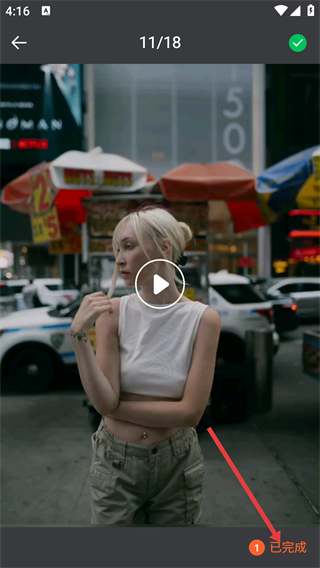 2、選擇目標(biāo)視頻后,點(diǎn)擊底部的【已完成】按鈕,進(jìn)入視頻變速設(shè)置頁(yè)面。