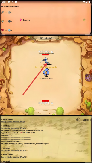 4、在Rift-valley-Lv3,和【Lv4-Earth-element-rewards】等敵人交鋒,通過戰(zhàn)斗獲取元素獎(jiǎng)勵(lì),增強(qiáng)戰(zhàn)力。